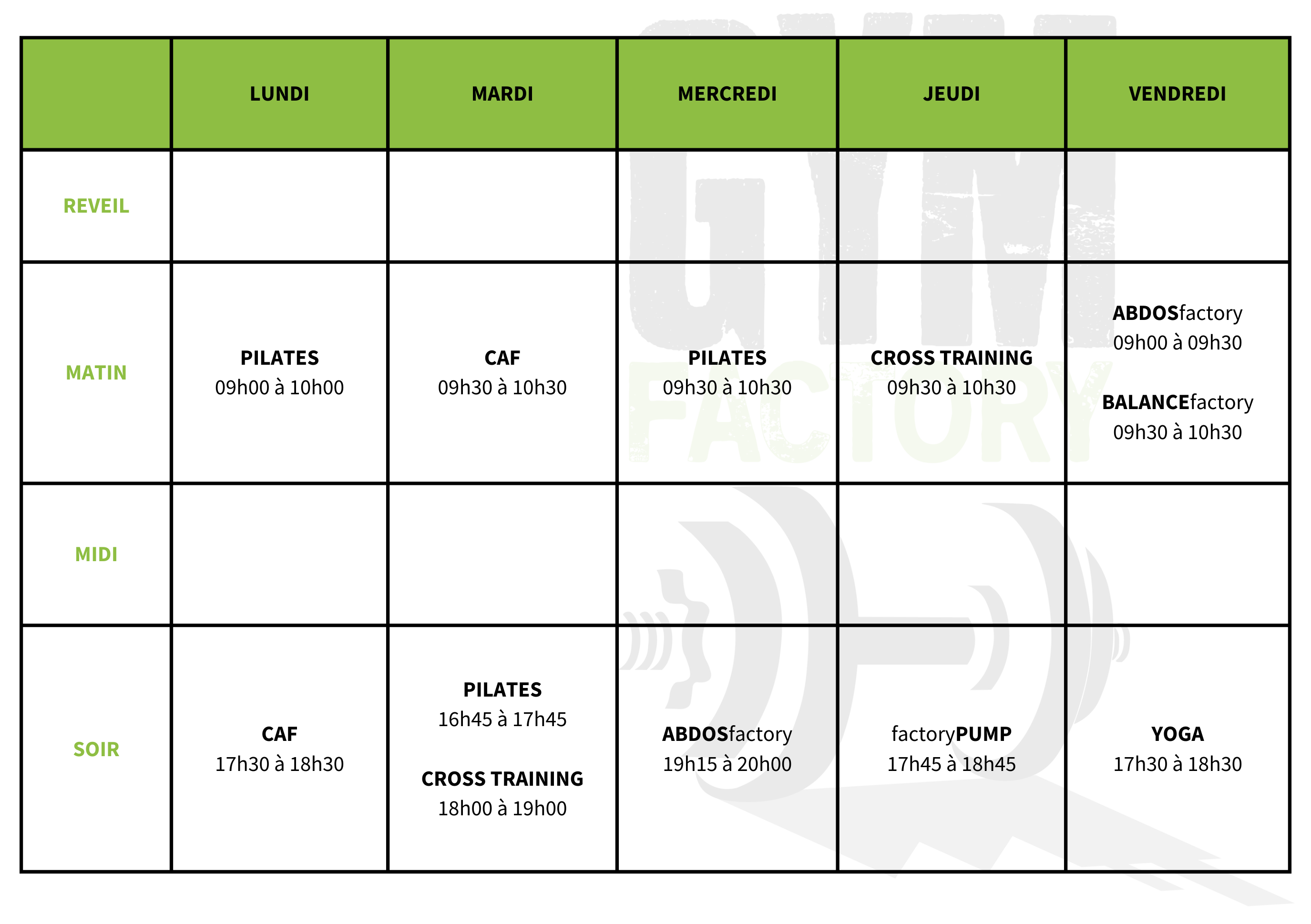 Planning des cours collectifs – Programme allégé du 01 Juillet au 31 Août 2024.